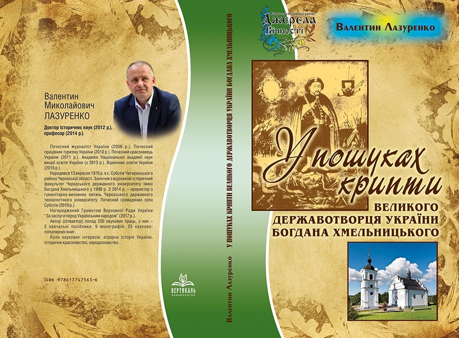 Лазуренко В. М. У пошуках крипти великого державотворця України Богдана Хмельницького : поховання гетьмана України Богдана Хмельницького в Іллінській церкві у с. Суботів: від столітніх досліджень, легенд та міфів до сучасних наукових гіпотез. Черкаси : Вертикаль, 2019. 76 с. |
