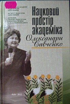 Науковий простір академіка Олександри Савченко / [упоряд.: Я. П. Кодлкж, Т. Я. Довга, Л. М. Заліток, О. С. Покусова; за ред. Я. П. Кодлюк]. Київ : Богданова А.М., 2012. 312 с. Книга містить інформацію про науковий доробок відомого українського вченого, доктора педагогічних наук, професора, академіка НАПН України Олександри Яківни Савченко та результати наукових досліджень аспірантів, докторантів і здобувачів, виконаних під її керівництвом. Бібліографію праць ученого підготовлено науковцями Державної науково-педагогічної бібліотеки України імені В. О. Сухомлинського. Видання адресоване науковцям, викладачам-педагогам, дослідникам-початківиям (аспірантам, магістрантам), учителям, студентам спеціальності Початкова освіта”. |